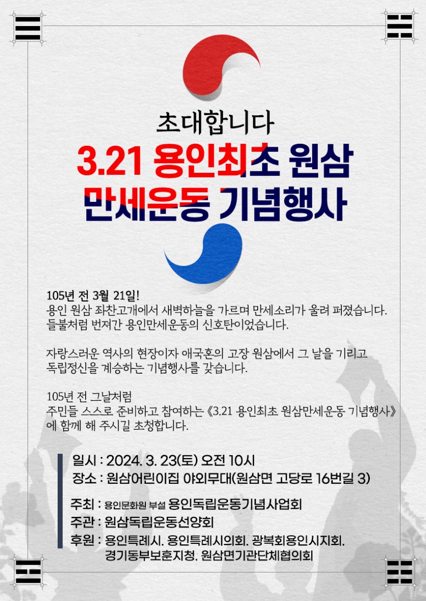 용인의 독립운동을 기념하고 선양하기 위하여 매년 용인3.1절 기념행사를 개최하고 있으며